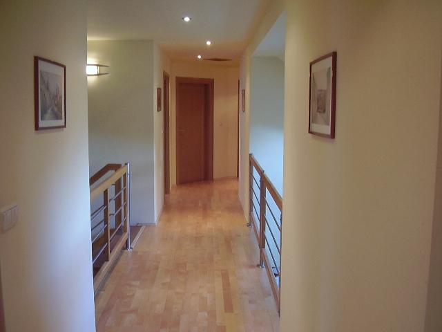 Druhé nadzemní podlaží: čtyři pokoje, tři šatny, dvě koupelny a technická místnost.