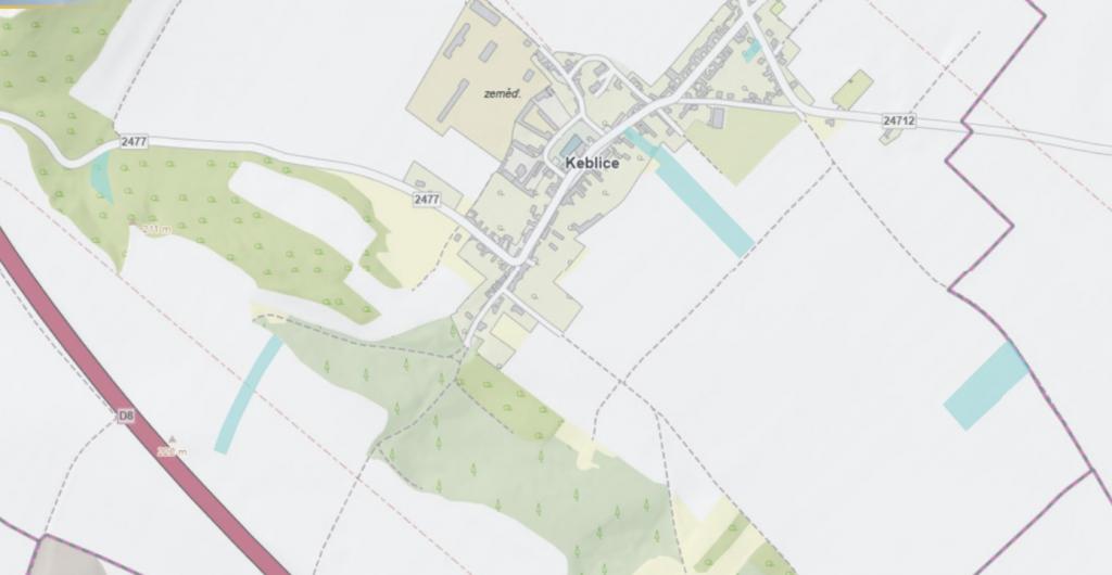 Předmětem dražby je spoluvlastnický podíl v rozsahu id. 1/3 pozemku p.č. 57/16-orná půda, p.č. 57/30-orná půda, p.č. 366/25-trvalý travn porost, p.č. 385/34-prná půda, p.č. 526/31-trvalý travní porost v k.ú. Keblice. Tyto zemědělské pozemky se rozprostírají v okolí obce Keblice a navazují na další pole a louky.