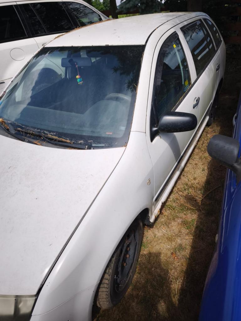 Automobil FABIA, bílá barva, bez RZ. Nepojízdné.