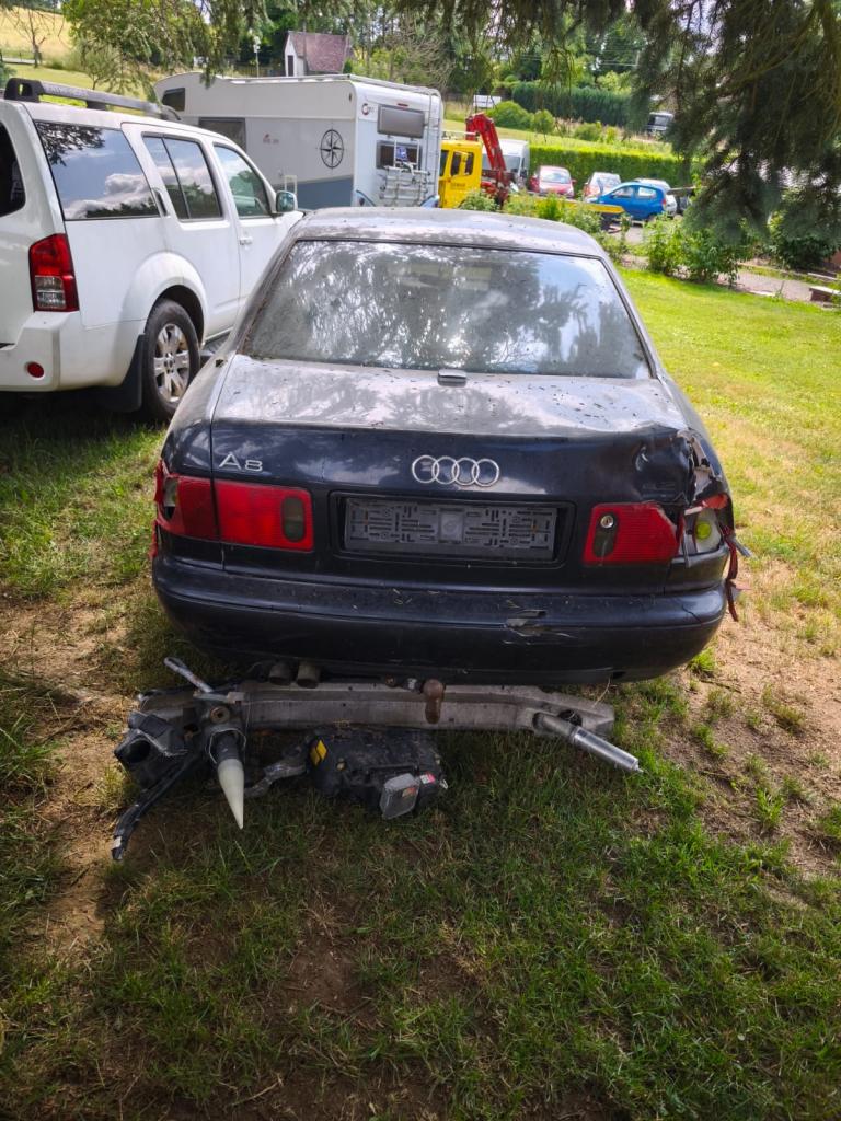 Automobil AUDI A8, černá barva, bez RZ. Nepojízdné.