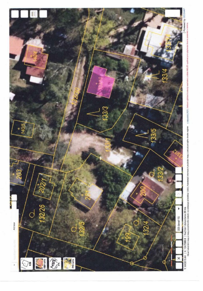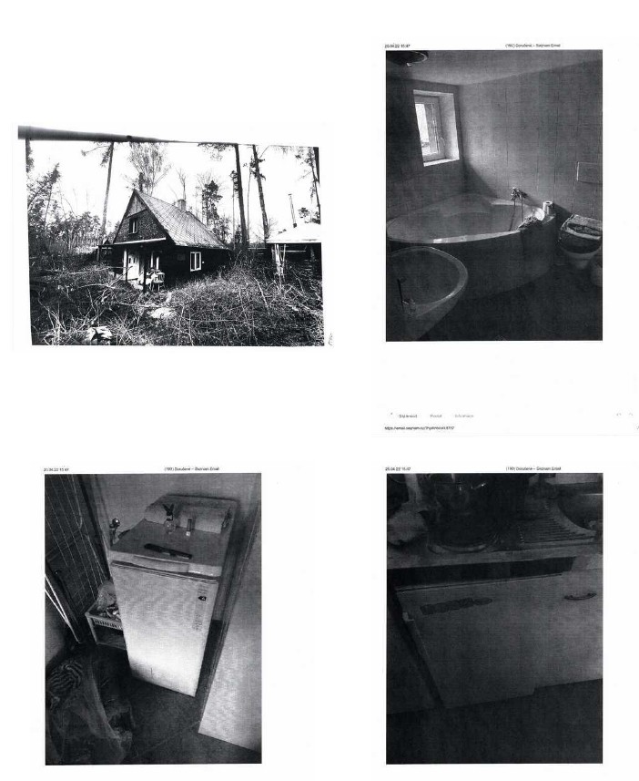 Chata je postavena na pozemku jiných vlastníků a pozemek, který není zastavěný, ale užívaný společně s chatou je taktéž ve vlastnictví jiných vlastníků. Pozemky jsou neudržované, zarostlé náletovými křovinami, které znemožňují přístup do objektu. Znalec vychází z informací poskytnutých sousedkou paní Erbenovou, notářkou JUDr. Světlanou Čápovou, poskytnutých fotodokumentací z minulého období a místního šetření, které bylo provedeno dne 2.7.2025 znalcem, kde dle dostupnosti, bylo provedeno částečné zaměření. Do objektu nebylo možno vstoupit z důvodu náletu, který brání ve vstupu.