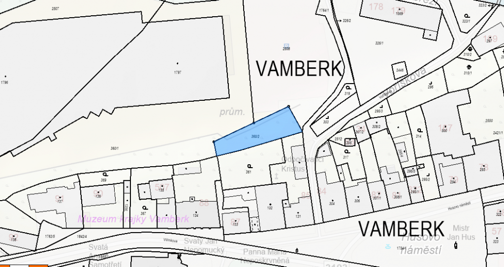 Předmětem elektronické licitace je pozemek o výměře 516 m2. Pozemek se nachází v obci Vamberk. V blízkosti centru města, cca 100 m od náměstí. Pozemek sousedí s velkým průmyslovým areálem PEWAG.